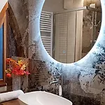 Dom City Apartments offre un patio et un coin salon meublé d'un bureau, ainsi que du confort comme un fer à repasser et une table à repasser. Le logement comprend 1 chambre à coucher à coucher. L'endroit comprend également 1 salle de bain avec une douche à l'italienne et des toilettes séparées. De plus, vous trouverez un sèche-cheveux, des articles de toilette pour les hôtes et des serviettes dans la salle de bain.